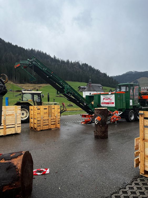 Nous avons acheté une machine à cliver Posch, il y a un an et demi. Nous fabriquons ainsi des bûches mesurant entre 20 et 50 cm. Comme les bûches sont coupées très courtes il ne leur faut que six mois à une année pour sécher.