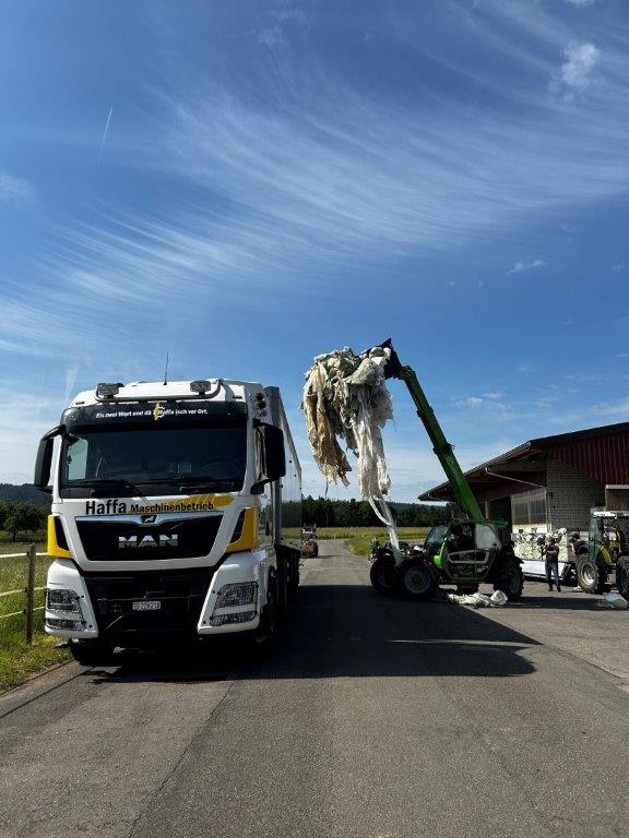 Le samedi 8 juin 2024, une journée de collecte de film d'ensilage a eu lieu à Ellighausen. Ce jour-là, 23`150kg de film d'ensilage et 370kg de fil ont été collectés. La collecte a été accompagnée de saucisses et de bière, offertes par Haffa Maschinenbetrieb d'Andwil. Cet événement a été organisé par Haffa Maschinenbetrieb en collaboration avec ERDE Suisse.