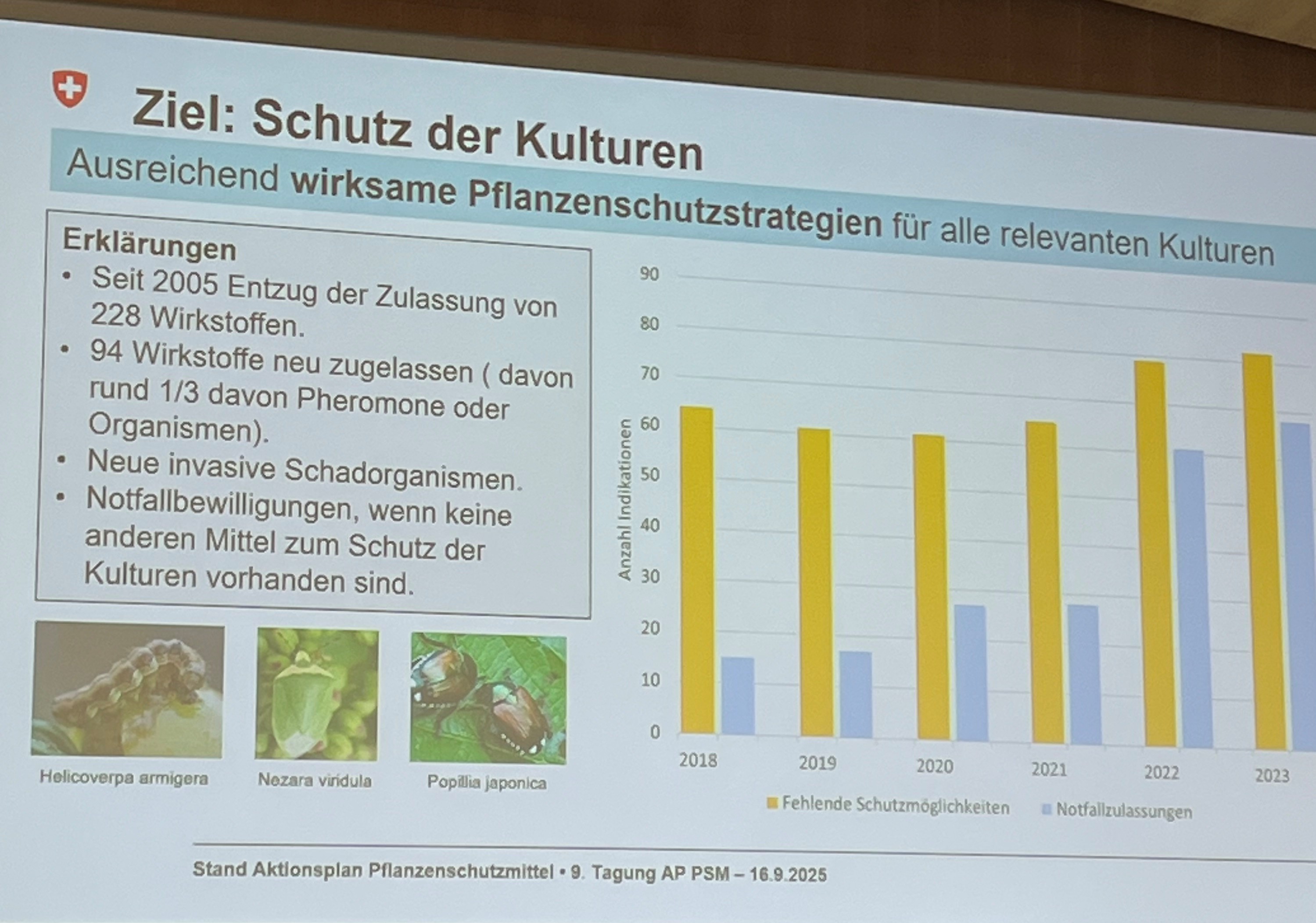 Die Herausforderungen im Pflanzenschutz wachsen spürbar. Immer mehr Schadorganismen breiten sich aus, und gleichzeitig schrumpft das Arsenal an Wirkstoffen. Notfallzulassungen seien nur ein Tropfen auf den heissen Stein – langfristig braucht es neue Lösungen, um Kulturen zu schützen und Ernteverluste zu vermeiden.